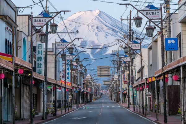 - Núi Phú Sĩ hiện ra ở cuối phố